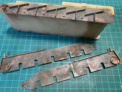 I am pleased with the result, although it is a little stark because the top-coat of paint is fresh. Once weathering is applied it should blend quite nicely, and more rusting and chipping can be applied as the build progresses.