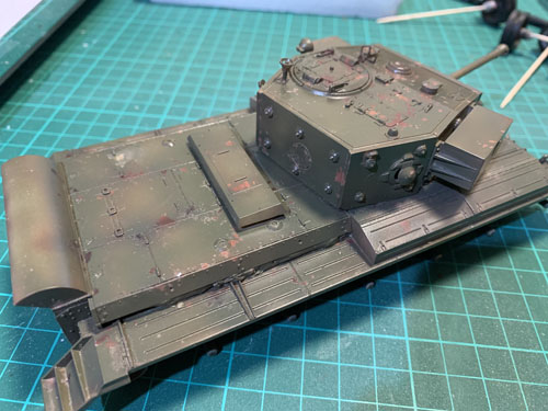 The Cromwell was sprayed with MRP Paint SSC No. 15 Olive Drab. Initially I was going leave it overnight for the paint to dry and cure, but as it is lacquer based and dries quickly so got and used an old toothbrush.