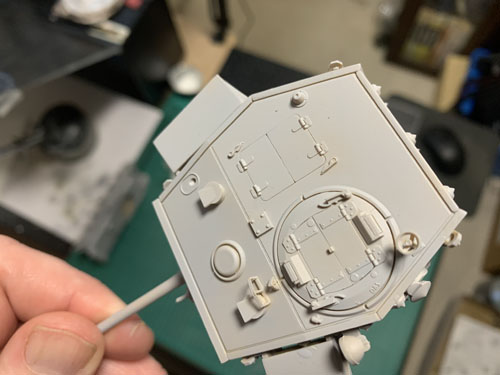 The main turret is a hexagon, and there were some fit issues. Start with the rear plate and work forwards. When the front part (with the barrel fitted) goes on there was a large gap of about a millimetre. This was on the bottom of the turret so will be invisible, and the visible seams fit perfectly.