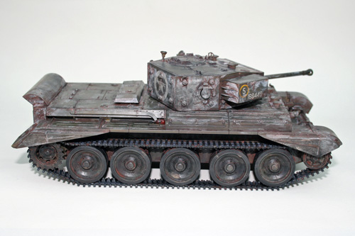 The instructions call for the winter camo to be applied to the turret sides only, but looking at reference photographs there doesn’t appear to be any consistency, with some Cromwells (and other WW2 tanks in winter camo) barely receiving any paint, and others completely covered in a thick layer, with even wheels and tracks painted.