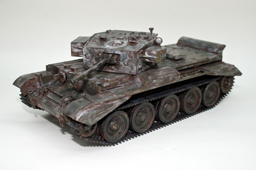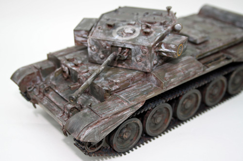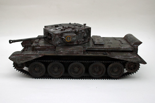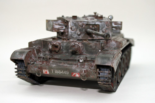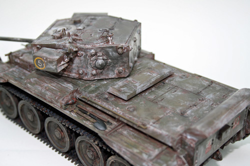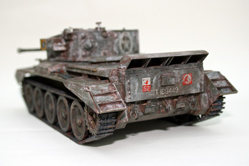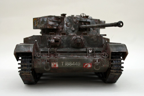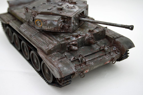 Using Brown Tamiya Panel Line Accent to accentuate the panel lines and give subtle weathering to the Cromwell tank. Coupled with the rusting effect from the salt chipping process this gives a good look of wear and tear from use in theatre, but cleaned prior to the application of winter camouflage.