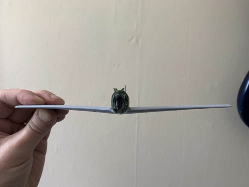 By far the biggest error of the kits is the locating pins for the wings are in the wrong position. This means that if the locating pins are married up with the holes it forces the wing to bend down – going from a straight dihedral to curving. In the photograph I have removed the location pins from the portside wing and glued it into position (you’ll see the wing is straight), but on the starboard side I have left the pins in place and keeping them located in the holes using the pressure of my hand (you can clearly see the wing is “drooping”). It’s a very simple fix, but I am shock that Airfix allows such a massive cock-up to slip past their quality control as it will affect the look of the finished model.