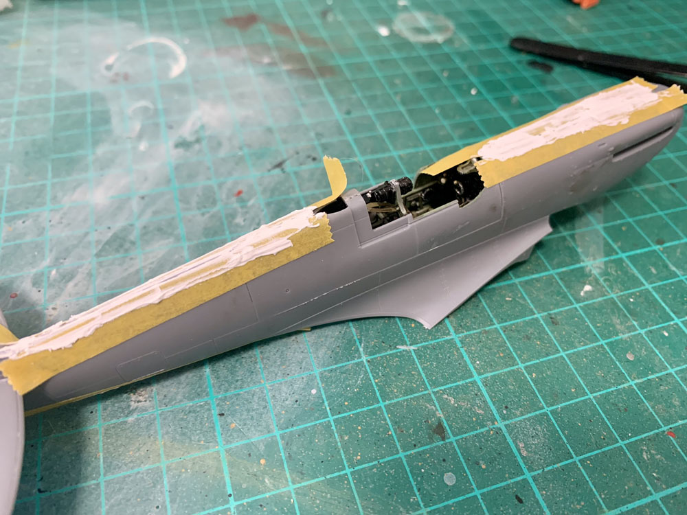 The main paint scheme was painted using Vallejo ModelAir paints, from the WW2 RAF box set – which makes sourcing the paints easier. I masked using the “Blu-Tak Worm” method, and lots of Tamiya tape. I did make a mistake but fortunately that was easy to correct.