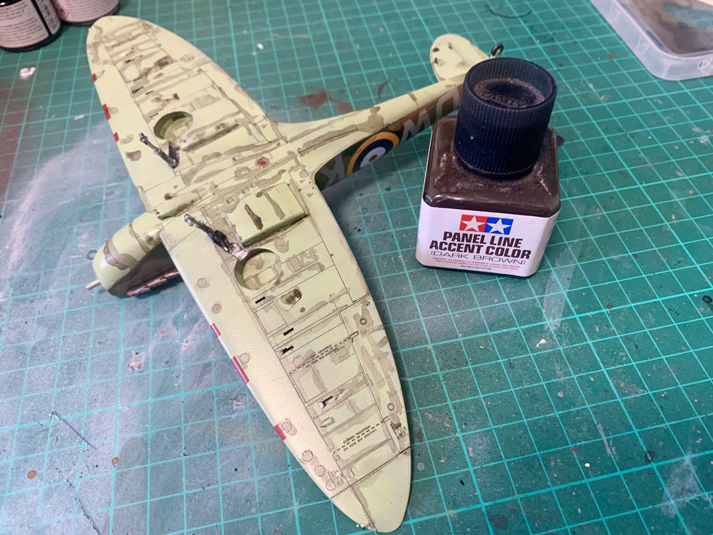 The result was a good looking and clean Spitfire Mk.1. I decided on light weathering to highlight the recess moulded detail, and used Tamiya’s Dark Brown Panel Line Wash. This is dotted onto the recessed detail and capillary action draws the solution around. After a few minutes this is wiped off, leaving the wash in the recesses. This really makes the detail pop out and adds a shadowing effect.